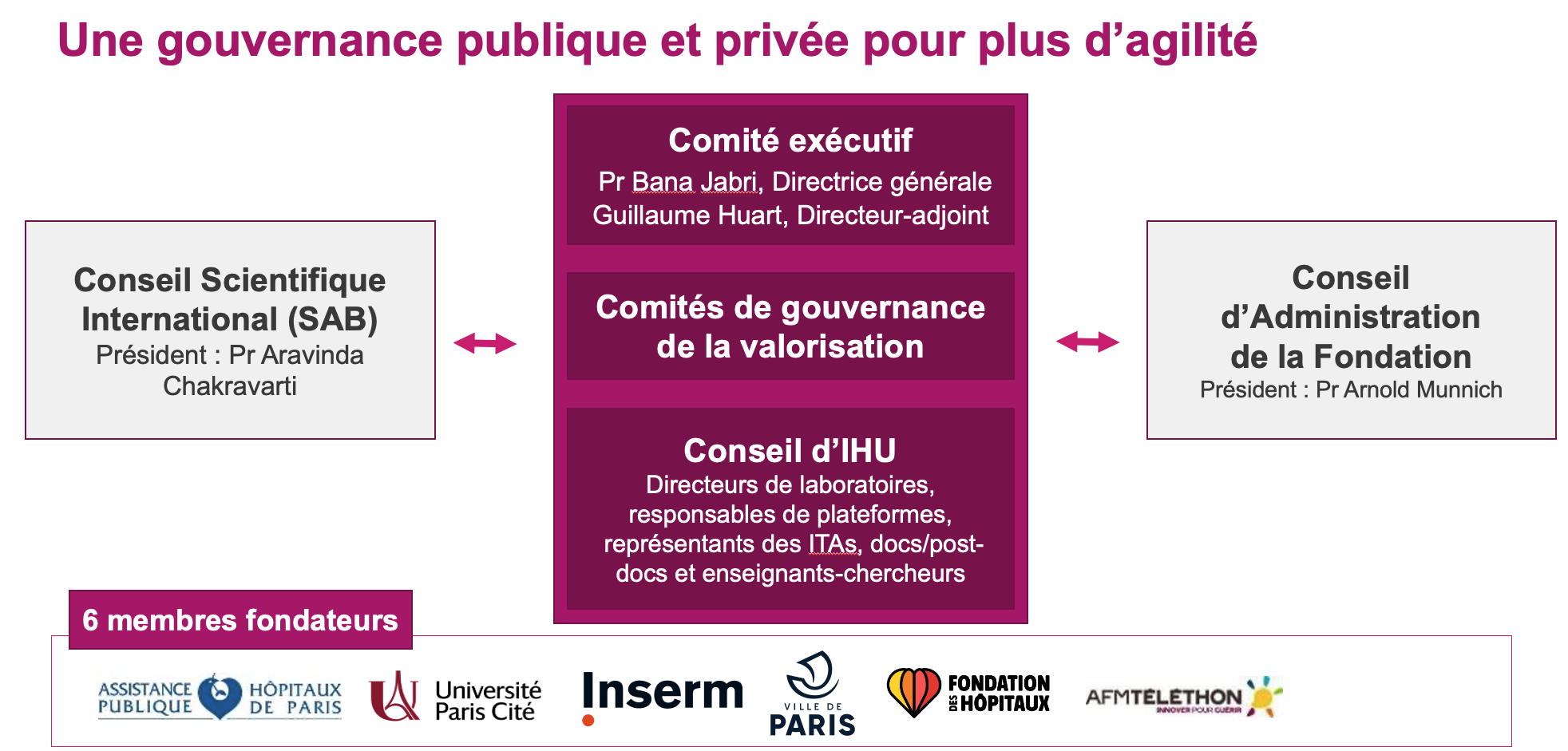Imagine est soutenu depuis sa création par six membres fondateurs : AP-HP, Inserm, Université Paris Cité, Fondation des Hôpitaux, Mairie de Paris, AFM-Téléthon.